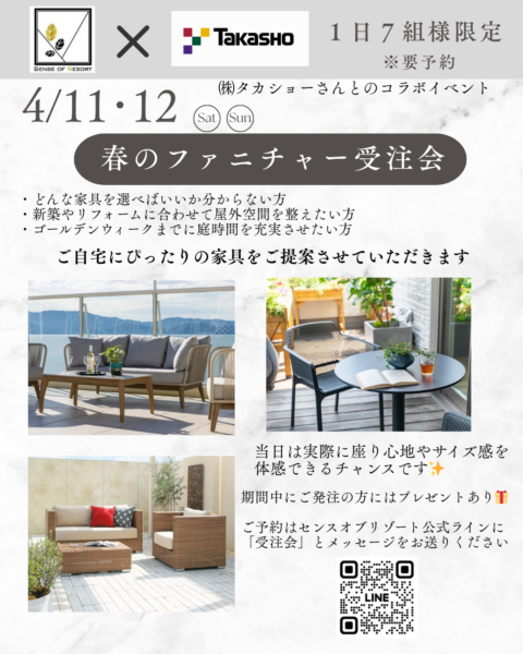 ㈱タカショーさんの屋外家具を店頭で特別展示します✨
