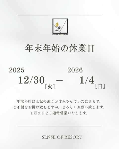 今年もセンスオブリゾートをご愛顧いただき誠にありがとうございました。
